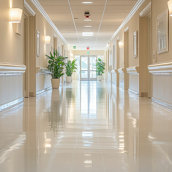 病院やクリニック、店舗など、床の美観と衛生を保つためのワックス仕上げも対応。滑りにくく清潔な床に整えます。
